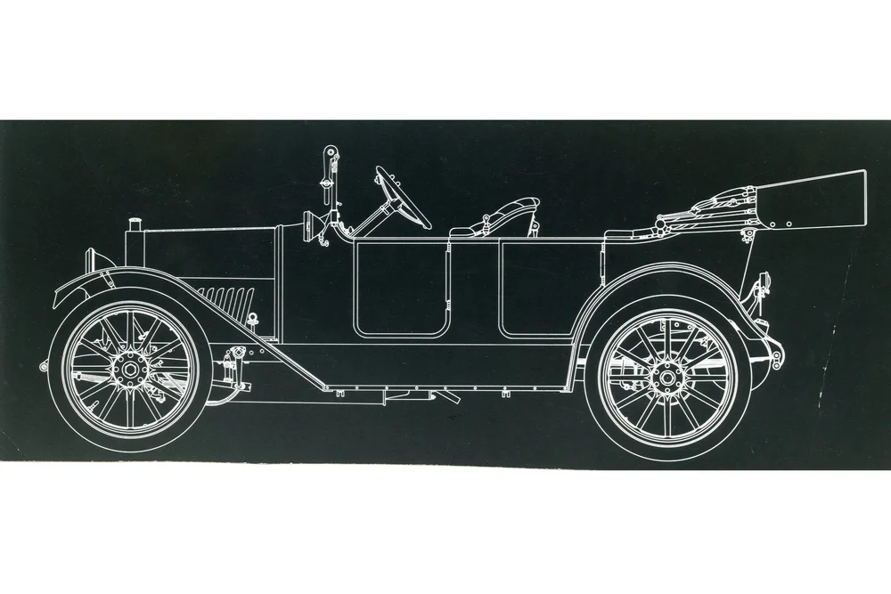 At the 1914 New York Auto Show, the H-3 Amesbury Special made its debut. The production specials were the first Chevy cars to carry the famous bowtie badge (said to have been inspired by wallpaper in a French hotel and scribbled on a napkin by Durant). There was the five-passenger H-4 tourer called the Baby Grand, which retailed for $875, and the H-2 roadster or Royal Mail sports car, which sold for $750. (You can see an example of a 1914 Royal Mail in The Vault here at Petersen.)
